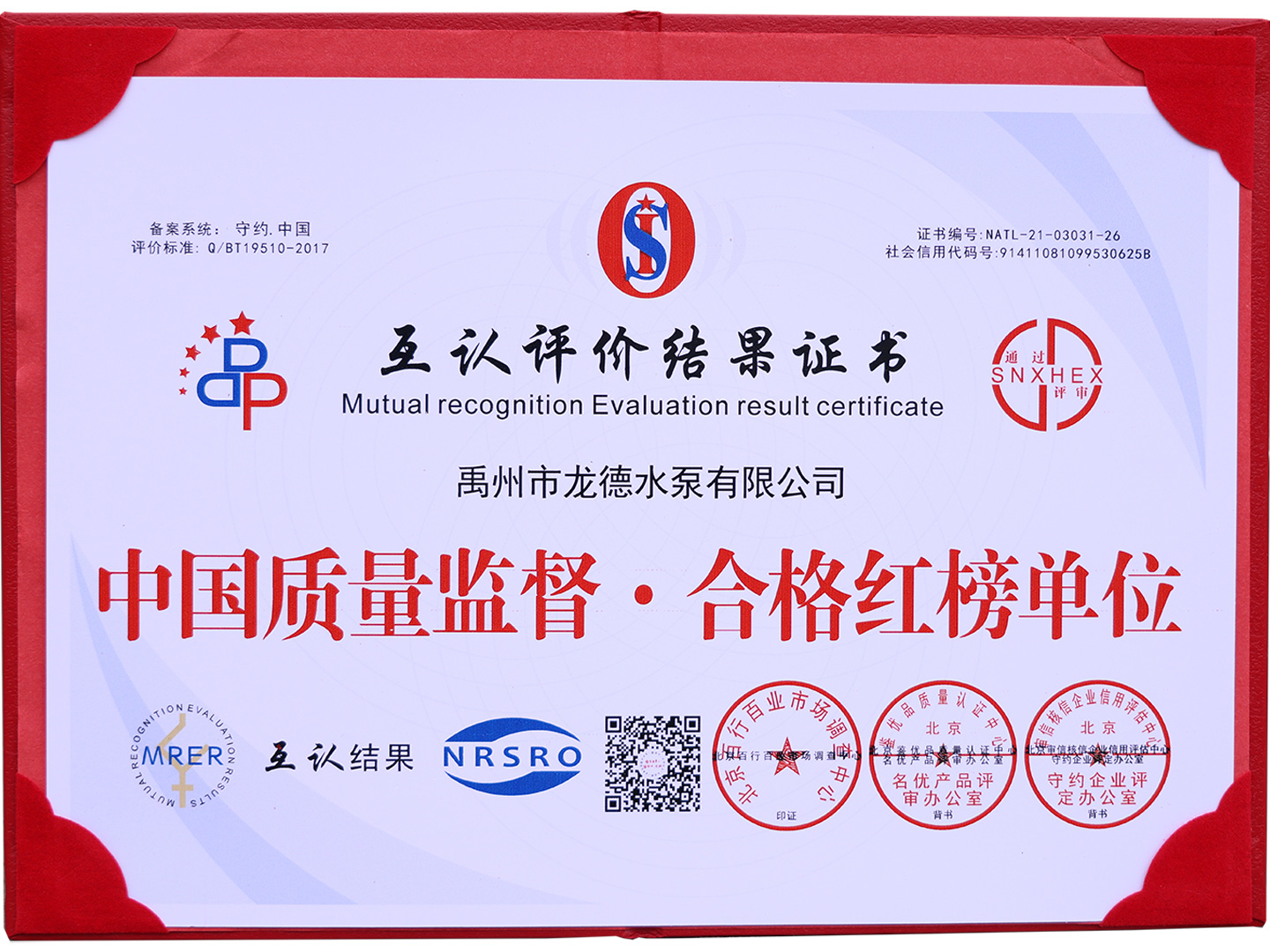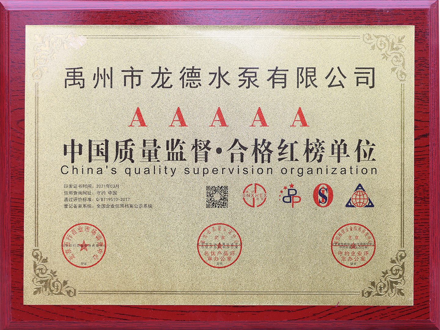 中國質(zhì)量監(jiān)督·合格紅榜單位
