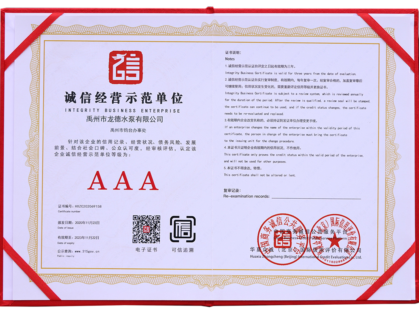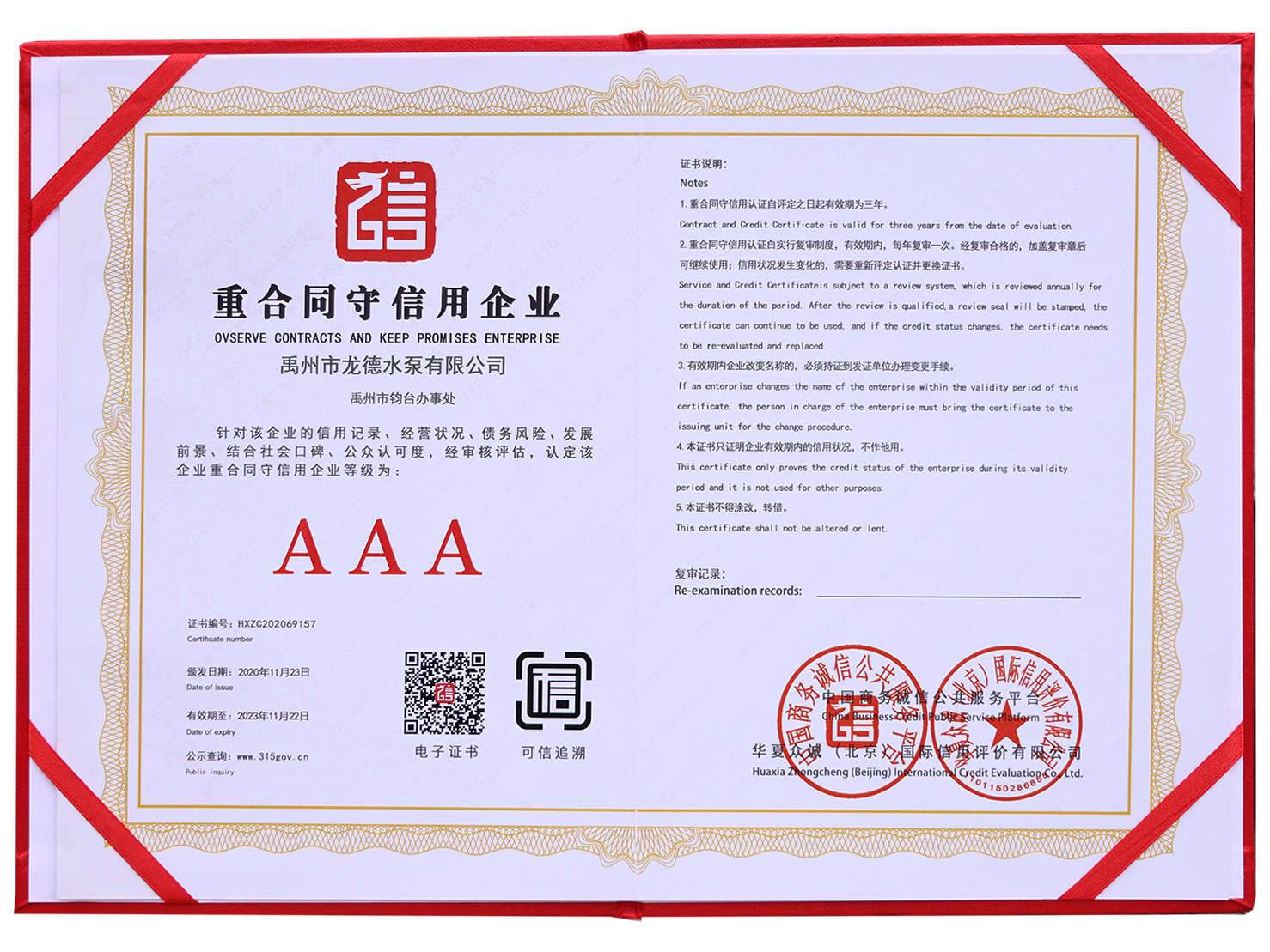企業(yè)信用評價AAA級信用企業(yè)
